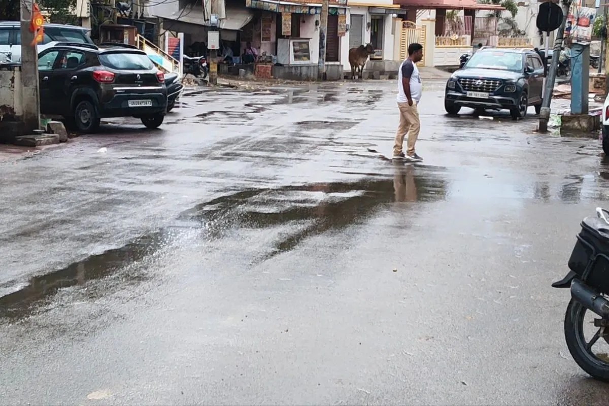 झुंझुनूं. जिला मुख्यालय पर हल्की बरसात से भीगी सड़क। फोटो पत्रिका