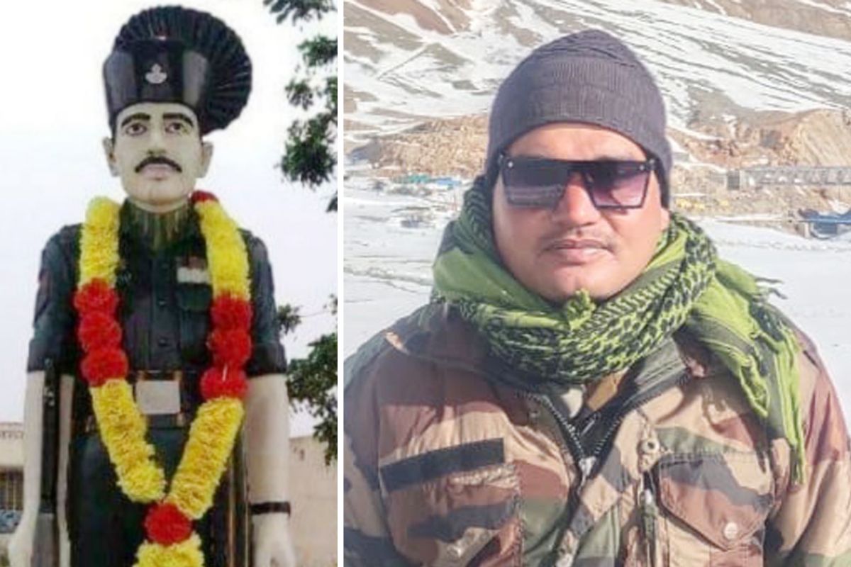 शहीद गोपाल सिंह की प्रतिमा और बेटा कंवरपाल सिंह