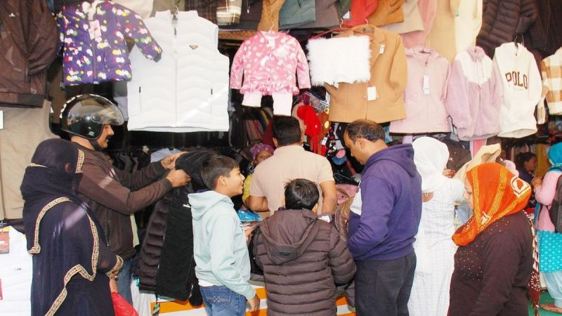 झुंझुनूं शहर में सर्दी से बचाव के लिए कपड़े खरीदते लोग।