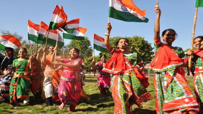 झुंझुनूं में तिरंगा लहराती युवतियां ।