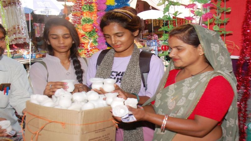 झुंझनूं में करवा पसंद करती महिला व युवतियां।
