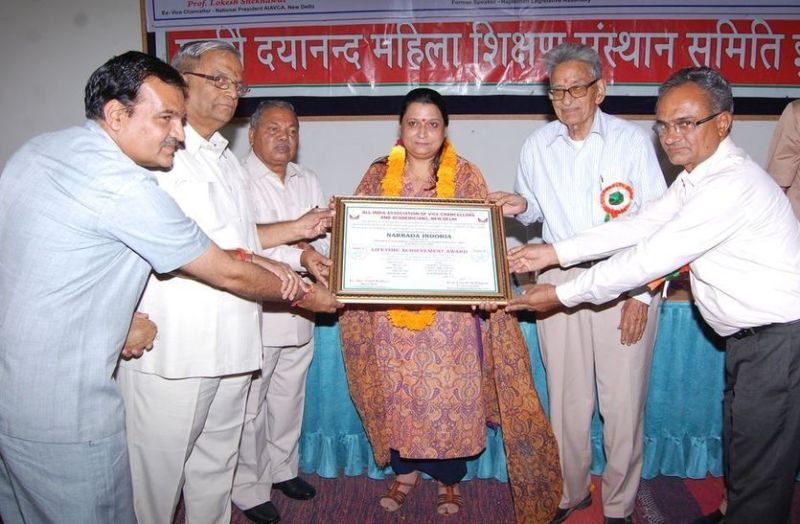 कार्यक्रम में महिला शिक्षा व नारी सशक्तिकरण में उल्लेखनीय योगदान के लिए प्रसिद्ध गणितज्ञ डॉ. घासीराम वर्मा तथा सूचना एवं जनसंपर्क विभाग की उप निदेशक नर्बदा इंदोरिया को शॉल, श्रीफल, प्रतीक चिन्ह के साथ लाइफ टाइम अचीवमेंट पुरस्कार प्रदान किया गया।