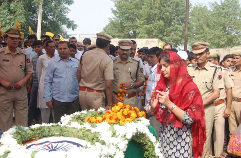 शहीद को गार्ड ऑफ ऑनर दिया। मुखाग्नि उनके बड़े बेटे सत्येंद्र ने दी। सीआईएसएफ के कमाण्डेट आरसी चौधरी ने शहीद के बड़े भाई प्रहलाद को राष्ट्रीय ध्वज सौंपा। 56 वर्षीय राजेन्द्र प्रसाद सात दिन पहले ही छुट्टियां बिताकर ड्यूटी पर लौटे थे। वे जम्मू कश्मीर के बडग़ाम जिले के वगूरा पावर ग्रिड स्टेशन पर तैनात थे।
