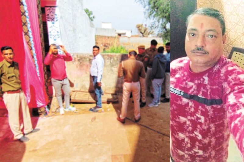 घटना स्थल की जांच करती पुलिस टीम व मृतक रमेश भार्गव।