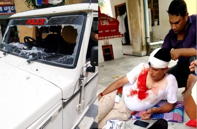 उदयपुरवाटी (झुंझुनूं). प्रदर्शनकारियों की भीड़ ने मंगलवार को गुढ़ागौडज़ी थाने में जमकर उपद्रव मचाया। पुलिस पर जमकर पथराव किया। पथराव में थानाधिकारी अशोक चौधरी के सिर में गंभीर चोट आई है। तीन अन्य पुलिसकर्मी भी पथराव में चोटिल हो गए। भीड़ ने पुलिस की गाड़ी का शीशा तोड़ दिया। थाने के अंदर घुसकर भी तोडफ़ोड़ की। बाद में पुलिस उप अधीक्षक रामचंद्र मुंड व पांच थानों का जाब्ता मौके पर पहुंचा। झुंझुनूं से आरएसी का जाब्ता भी भेजा गया। इसके बाद पुलिस ने उपद्रवियों की धरपकड़ शुरू की। शाम तक 52 लोगों को पुलिस ने गिरफ्तार कर लिया। कानून व्यवस्था बनाए रखने के लिए वहां अभी पुलिस जाब्ता तैनात है।