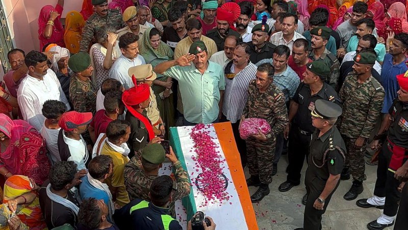 भैंसावता कलां में जैसे ही शहीद अजय सिंह की पार्थिव देह पहुंची, उनकी पत्नी शालू कंवर ताबूत से लिपटकर रो पड़ी। वह दो बार बेहोश होकर गिर पड़ी। बुआ की बेटी बहन का भी यही हाल हुआ, रक्षाबंधन से पहले भाई देह देखकर उसने कहा अब किसकी कलाई पर राखी बांधूंगी भैया…। अजय के पिता सेना से रिटायर हैं, उन्होंने सेना की टोपी पहनकर बेटे को सैल्यूट किया। उनकी आंख में आंसू थे तो बेटे की शहादत पर गर्व भी था। अजय के भाई करणवीर सिंह ने मुखाग्नि दी।