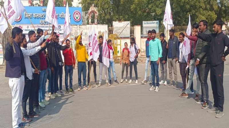 राजीव गांधी युवा मित्रों के समर्थन में एसएफआई ने किया प्रदर्शन