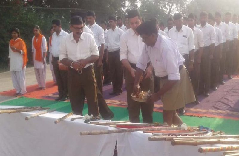 संघ का स्थापना दिवस मनाया, शस्त्र पूजन किया