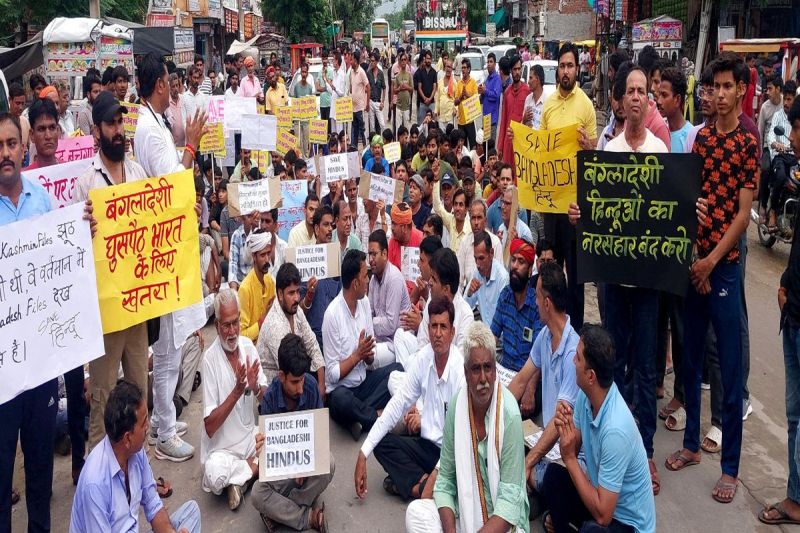 बांग्लादेश में हिंदुओं पर हो रहे अत्याचारों के विरोध में जिलेभर में विरोध शुरू हो गया। संपूर्ण शेखावाटी सीकर, चूरू, झुंझुनूं व नीमकाथाना में सर्व हिंदू समाज की ओर से धरना प्रदर्शन कर विरोध जताया गया। बुधवार को कई शहर व कस्बों में विरोध में बाजार भी बंद रहे। झुंझुनूं जिले के बिसाऊ, सूरजगढ़, नवलगढ़, सूरजगढ़ समेत अधिकांश स्थानों पर धरना प्रदर्शन किए गए और बाजार बंद रख कर बांग्लादेश में हिंदुओं पर हो रहे अत्याचारों को रोकने की मांग की गई। बिसाऊ में सर्व हिंदू समाज की ओर से बाजार बंद रख जन आक्रोश रैली निकाली गई। शहर के शीतला चौक से बाइपास तक आक्रोश रैली निकाली गई। आक्रोश रैली में विभिन्न धार्मिक संगठन, सामाजिक संगठन, पूर्व सैनिक, युवा बच्चे और बुजुर्ग हाथों में विरोध के नारे लिखी तख्तियां हाथों में थामे में नारे लगाते चल रहे थे। शीतला चौक दरवाजे से शुरू हुई आक्रोश रैली पुरानी नगर पालिका, बस स्टैंड, से होते हुए बाईपास पहुंची। जहां हनुमान चालीसा के पाठ के बाद राष्ट्रगान के साथ आक्रोश रैली का समापन किया गया। रैैली में आरएसएस पदाधिकारी शामिल हुए।