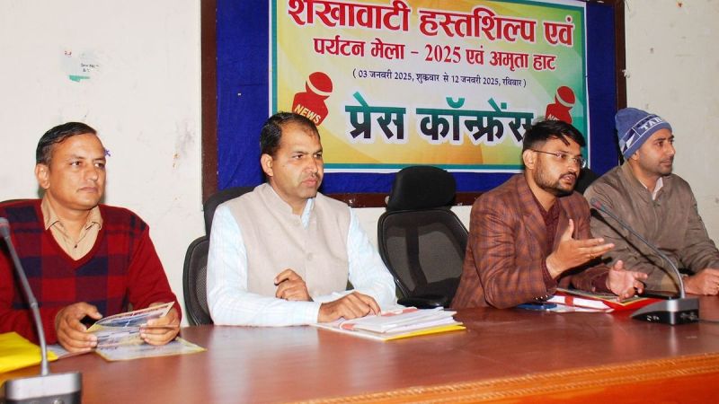 आबूसर पर्यटन मेले की जानकारी देते अधिकारी।
