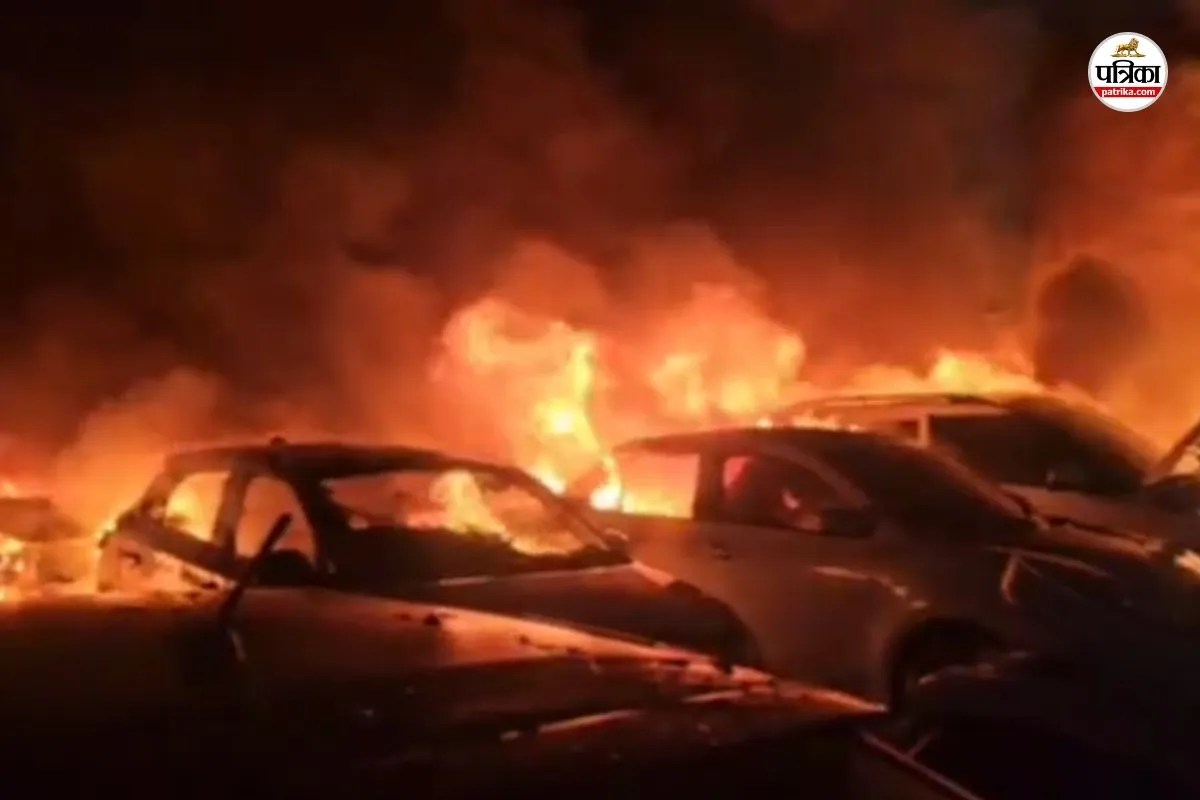 वकॅशॉप में जलती गाड़ियां। फोटो: पत्रिका