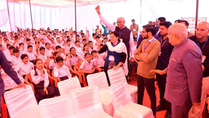 झुंझुनूं के काजड़ा गांव में बच्चों से मिलते उप राष्ट्रपति ।