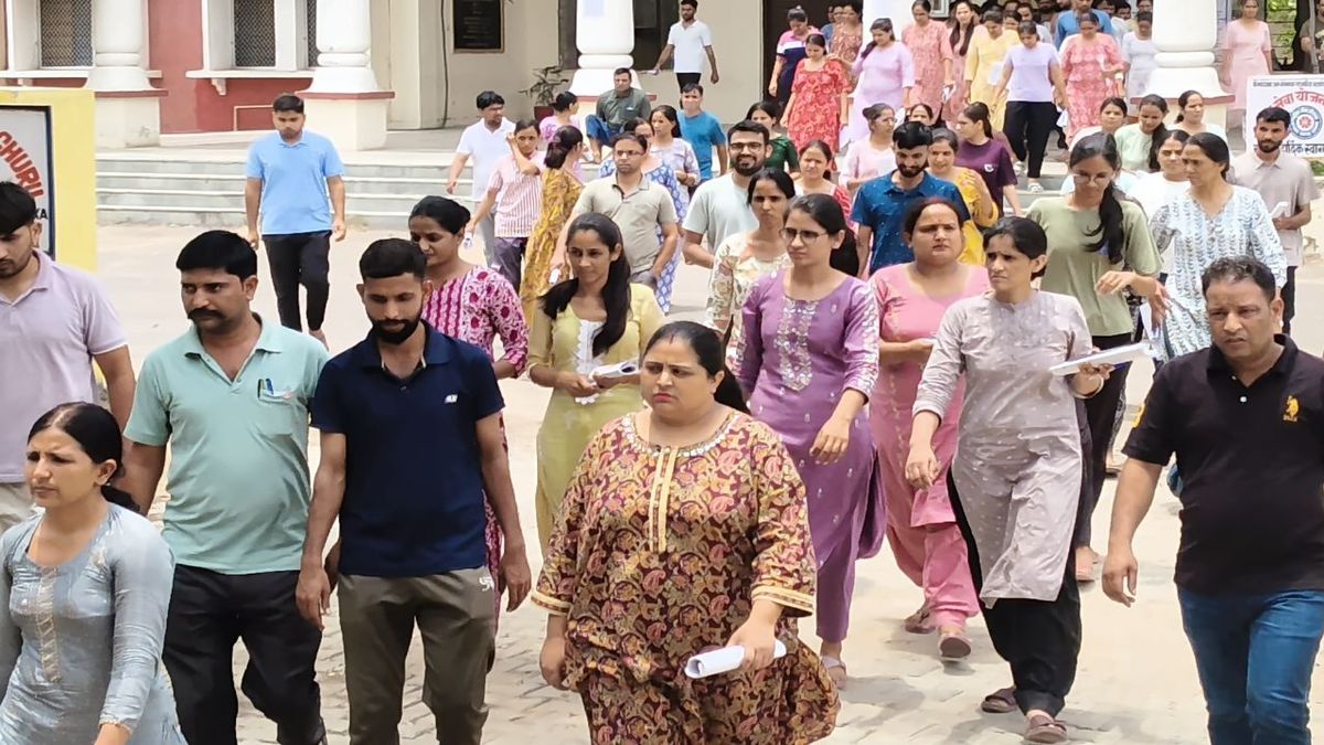 एक केन्द्र पर परीक्षा देकर बाहर आते युवक-युवतियां। फाइल फोटो