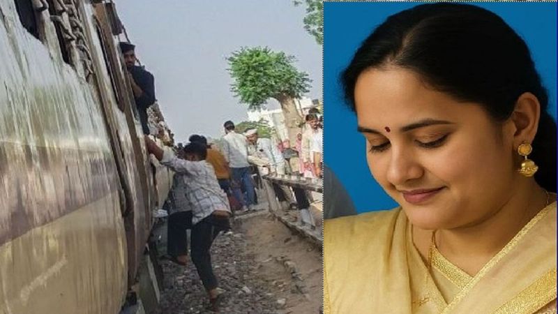 घटना के बाद खड़ी ट्रेन, मौजूद लोग तथा मृतका अर्चना।