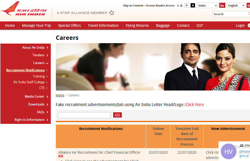 एयर इंडिया भर्ती 2020 के लिए आवेदन कैसे करें