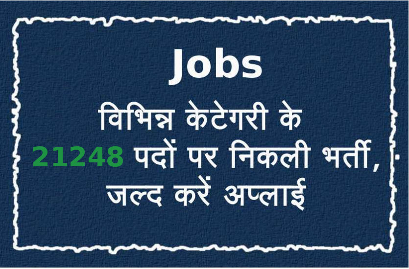 सरकारी नौकरी: बेरोजगार युवाओं के लिए अच्छी खबर है। सरकार द्वारा विभिन्न केटेगरी के कुल 21248 पदों पर भर्ती के लिए आवेदन मांगे गए हैं। इच्छुक और योग्य उम्मीदवार नियत तिथि तक संबंधित भर्ती के लिए ऑनलाइन आवेदन कर सकते हैं।