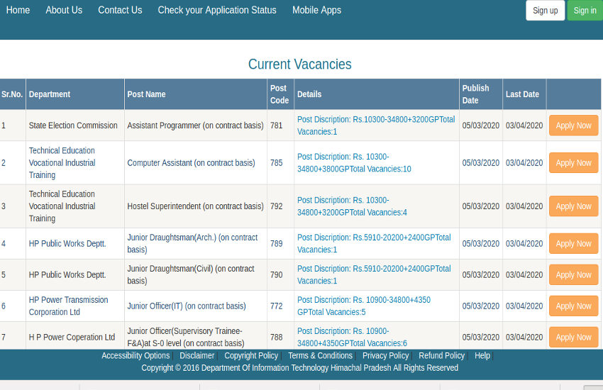 सभी पद अनुबंध के आधार पर हैं। आवेदन पत्र भरने और जमा करने के लिए उम्मीदवारों को पोस्ट नाम के आगे 'अप्लाई नाउ ’विकल्प पर क्लिक करना होगा।
