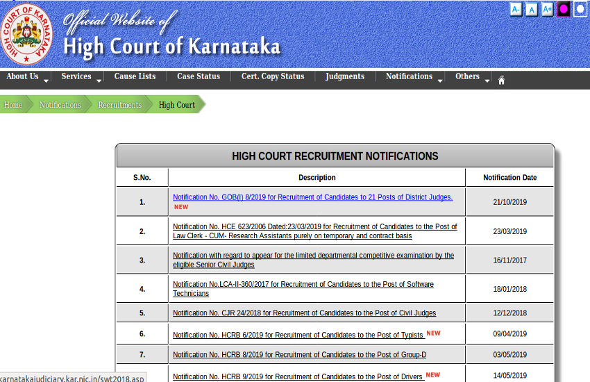कर्नाटक उच्च न्यायालय भर्ती 2020: ऑथ कमिश्नर के 851 पदों पर भर्ती के लिए कर्नाटक उच्च न्यायालय द्वारा आवेदन आमंत्रित किए गए है। इच्छुक और पात्र उम्मीदवार 7 फरवरी 2020 को या उससे पहले निर्धारित प्रारूप के माध्यम से उक्त पद पर आवेदन कर सकते हैं।