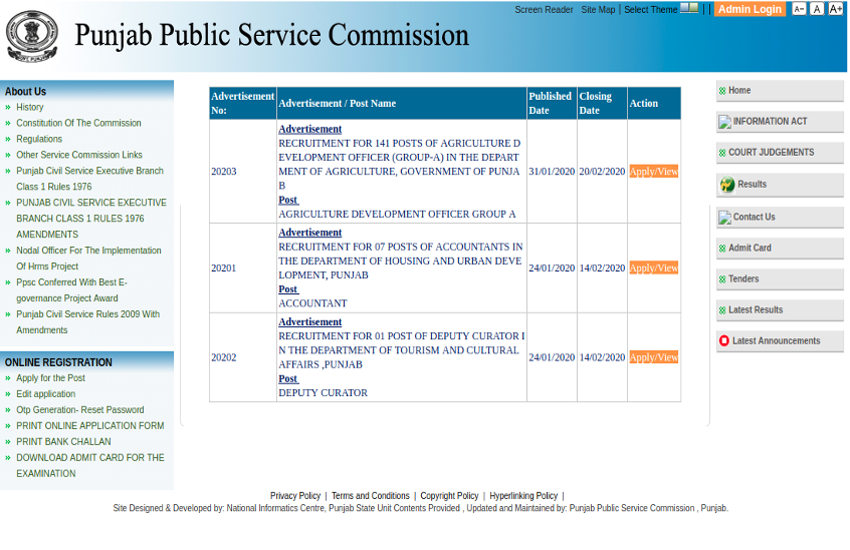 Govt Jobs 2020: पंजाब लोक सेवा आयोग ने कृषि विकास अधिकारी (ग्रुप-ए) के पदों पर भर्ती के लिए ऑनलाइन आवेदन आमंत्रित किए हैं। पदों के लिए इच्छुक और योग्य उम्मीदवार आधिकारिक वेबसाइट ppsc.gov.in पर 20 फरवरी, 2020 तक ऑनलाइन आवेदन कर सकते हैं। आवेदन करने से पूर्व अभ्यर्थी को पात्रता संबंधी सभी जरुरी जानकारी के लिए आधिकारिक नोटिफिकेशन पढ़ लेनी चाहिए। भर्ती परीक्षा 8 मार्च, 2020 को राज्य के प्रमुख शहरों में आयोजित की जानी है।