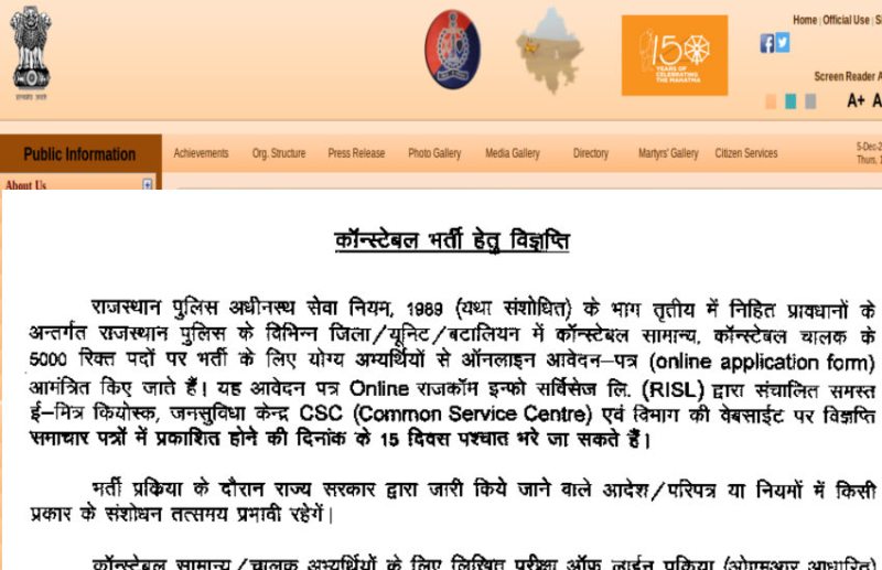 राजस्थान पुलिस कांस्टेबल अधिसूचना 2019 को पढ़ने के लिए यहां क्लिक करें