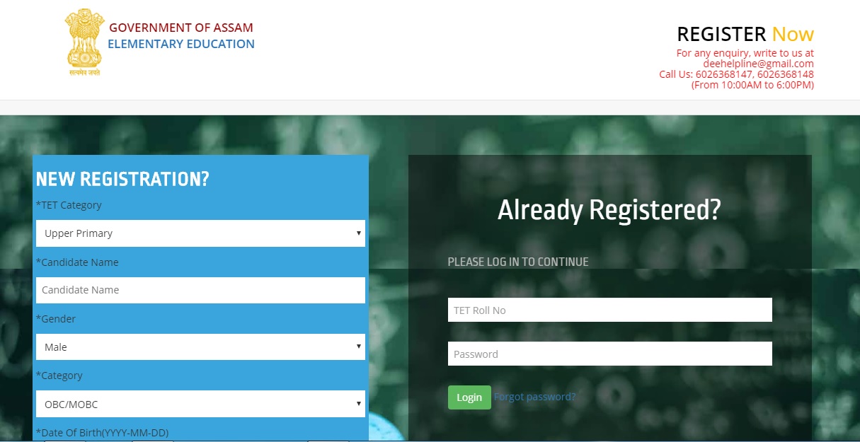 DEE, असम के अंतर्गत LP और UP स्कूलों के शिक्षकों के नियमित पद के लिए आवेदन करने के लिए यहां दिए गए URL पर क्लिक करें - http://93.188.162.181/Registration