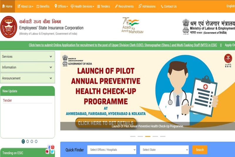 ईएसआईसी भर्ती 2022: कर्मचारी राज्य बीमा निगम (ईएसआईसी) ने देशभर में विभिन्न विभागों में स्टेनोग्राफर, अपर डिवीजन क्लर्क और मल्टी टास्किंग स्टाफ के विभिन्न पदों पर भर्ती के लिए ऑनलाइन आवेदन प्रक्रिया शुरू कर दी है। उक्त पदों के लिए आवेदन करने के इच्छुक उम्मीदवार ऑनलाइन मोड के माध्यम से esic.nic.in पर आवेदन जमा कर सकते हैं।