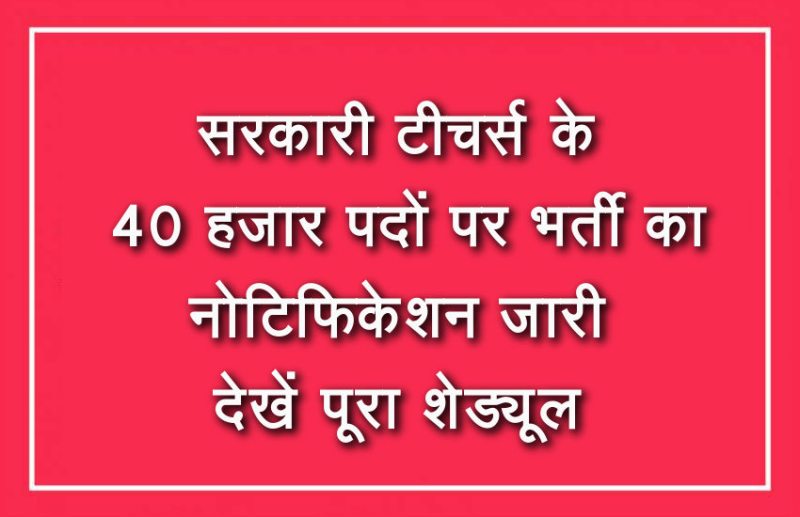 Govt Jobs 2019 : बिहार शिक्षा विभाग में अध्यापकों के रिक्त पदों को भरने के लिए नोटिफिकेशन जारी हो चूका है। माध्यमिक एवं उच्चतर माध्यमिक शिक्षकों के प्रदेश में करीब 40 हजार पदों पर भर्ती होगी। शिक्षा विभाग ने 1 जुलाई, 2019 को नियोजन का पूरा शेड्यूल जारी कर दिया है। बिहार शिक्षा विभाग के उपचसिचव ने सभी जिला परिषद और नगर निकाय नियोजना इकाइयों को रिक्त पदों की सूची तैयार कर, विभाग को सौंपने का आदेश दिया है। अगले महीने 26 अगस्त तक रिक्त पदों की विषयवार सूचना प्रकाशित की जाएगी। Bihar Teacher Recruitment 2019 के लिए 27 अगस्त, 2019 से लेकर 26 सितंबर, 2019 तक आवेदन आमंत्रित किए जाएंगे। भर्ती प्रक्रिया 29 नवंबर, 2019 तक पूरा कर लिया जाएगा।