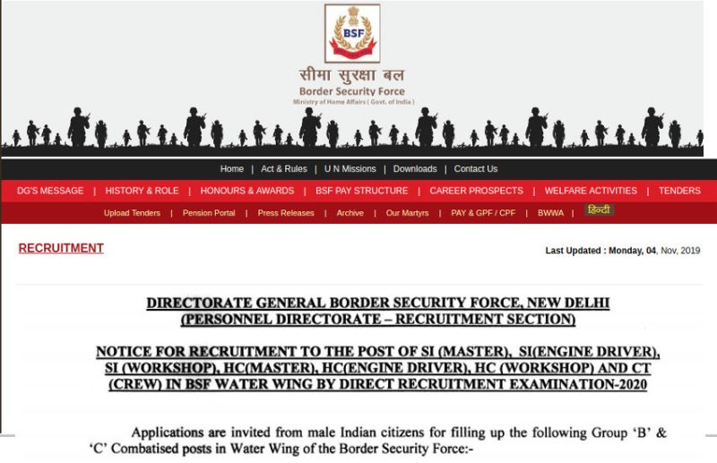 BSF Recruitment 2020 नोटिफिकेशन के लिए यहां क्लिक करें