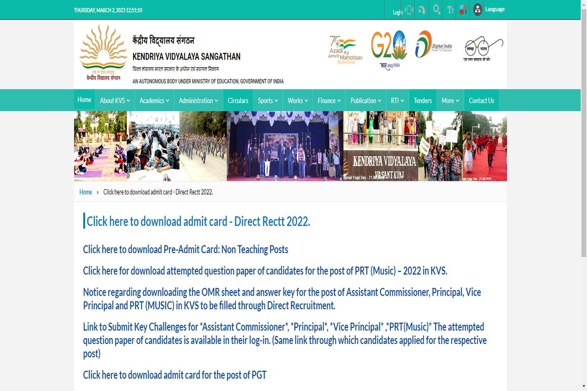 2. यहां होम पेज पर उपलब्ध डायरेक्ट रिक्रूटमेंट पोस्ट लिंक के लिए KVS एडमिट कार्ड 2022 पर क्लिक करें।