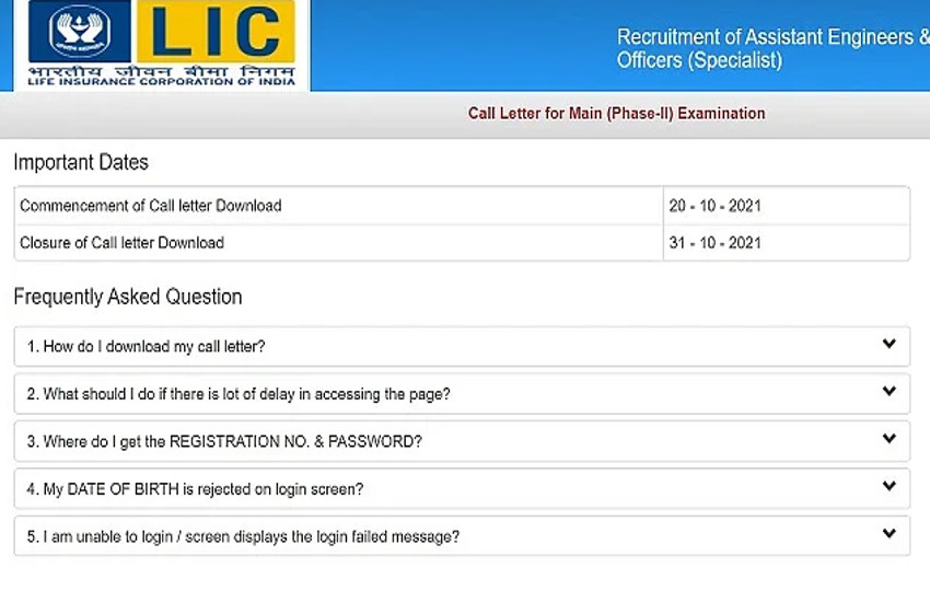 जारी नोफिटिकेशन के अनुसार, असिस्टेंट इंजीनियर के लिए 50 और असिस्टेंड एडमिनिस्ट्रेटिव ऑफिसर के 168 पदों पर भर्ती के लिए परीक्षा का आयोजन किया जा रहा है। अभ्यर्थियों के पास इसे डाउनलोड करने के लिए 31 अक्टूबर 2021 तक का समय है। एलआईसी एएओ और एई मेन्स एग्जाम भी 31 अक्टूबर को ही निर्धारित है।