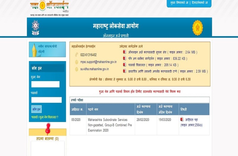 महाराष्ट्र लोक सेवा आयोग (MPSC) ने महाराष्ट्र अधीनस्थ सेवा गैर-राजपत्रित समूह-बी संयुक्त प्रारंभिक परीक्षा 2020 के लिए भर्ती अधिसूचना जारी की है। MPSC द्वारा घोषित कुल 806 रिक्तियों के लिए, 475 सब इंस्पेक्टर पोस्ट के लिए है, सहायक अनुभाग अधिकारी पद के लिए 52 और राज्य कर निरीक्षक पद के लिए 64 पदों के लिए आवेदन करने के इच्छुक और MPSC द्वारा उल्लिखित पात्रता मानदंडों को पूरा करने के इच्छुक उम्मीदवार MPSC की आधिकारिक वेबसाइट mahampsc.mahaonline.gov.in पर जाकर अपना ऑनलाइन आवेदन जमा कर सकते हैं।
