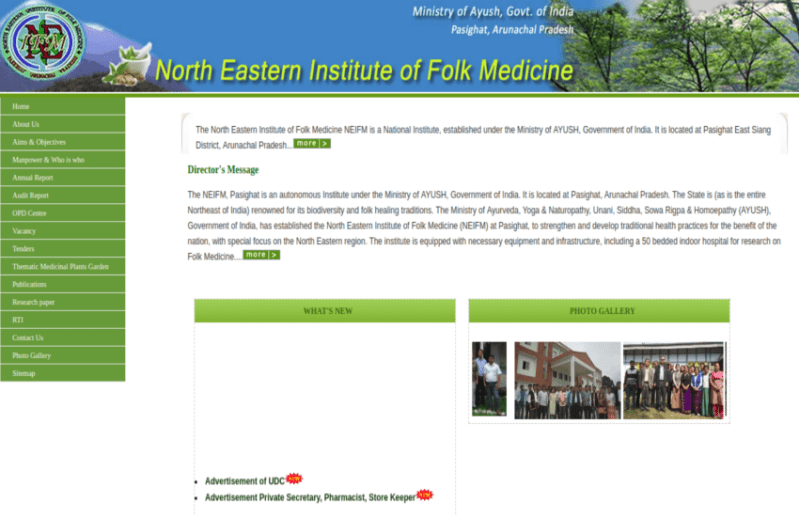 नॉर्थ ईस्टर्न इंस्टीट्यूट ऑफ फॉल्क मेडिसिन ( NEIFM ) में रिक्त पदाें का विवरणः