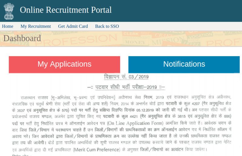 राजस्था पटवारी भर्ती विस्तृत नोटिफिकेशन के लिए यहां क्लिक करें