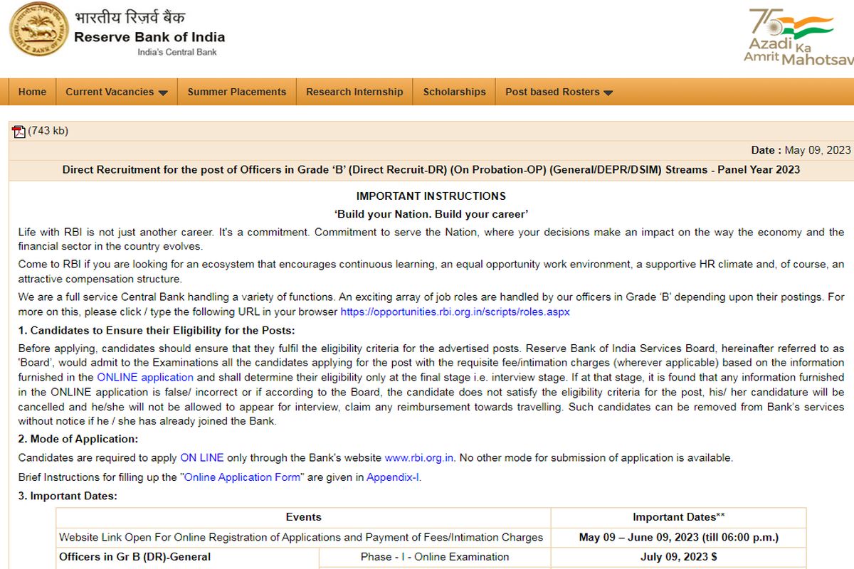RBI Grade B recruitment 2023