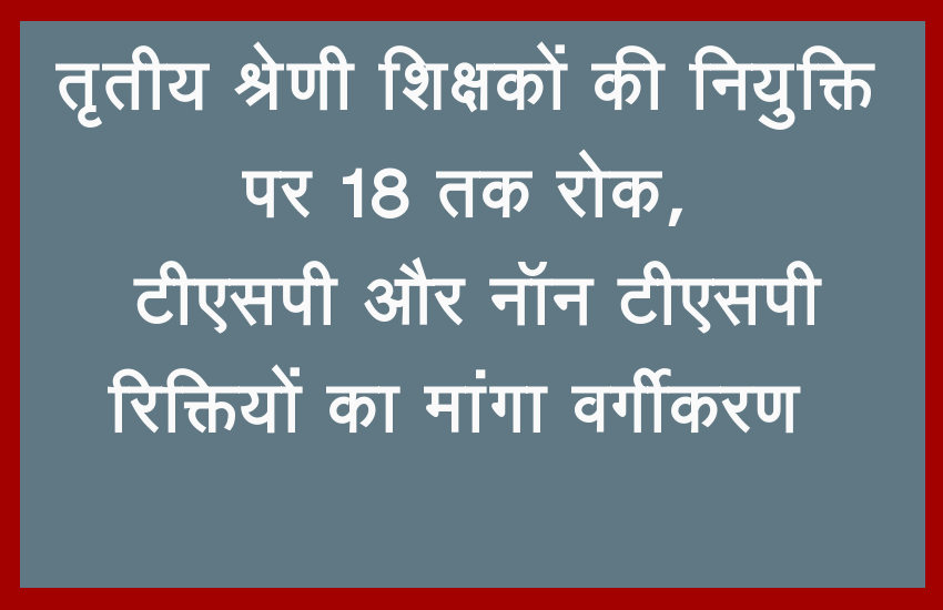 तृतीय श्रेणी शिक्षक भर्ती लेवल प्रथम के 26 हजार पदों पर राज्य सरकार के तीन दिन में नियुक्ति पत्र देने के आदेश के दूसरे ही दिन बुधवार को राजस्थान हाईकोर्ट ने नियुक्ति प्रक्रिया पर रोक 18 फरवरी तक के लिए लगा दी है। कोर्ट ने सरकार को ट्राइबल सब प्लान और गैर ट्राइबल सब प्लान क्षेत्रों में रिक्तियों का वर्गीकरण कर रिपोर्ट पेश करने को कहा है। हालांकि कोर्ट ने यह स्पष्ट कर दिया कि जो नियुक्तियां हो चुकी है, उन पर इस रोक का कोई प्रभाव नहीं पड़ेगा।