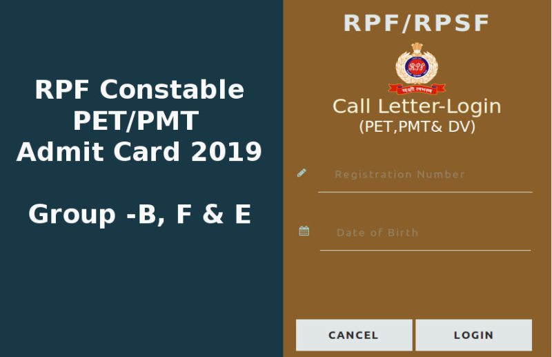 RPF Constable Group E PET/PMT Admit Card 2019
