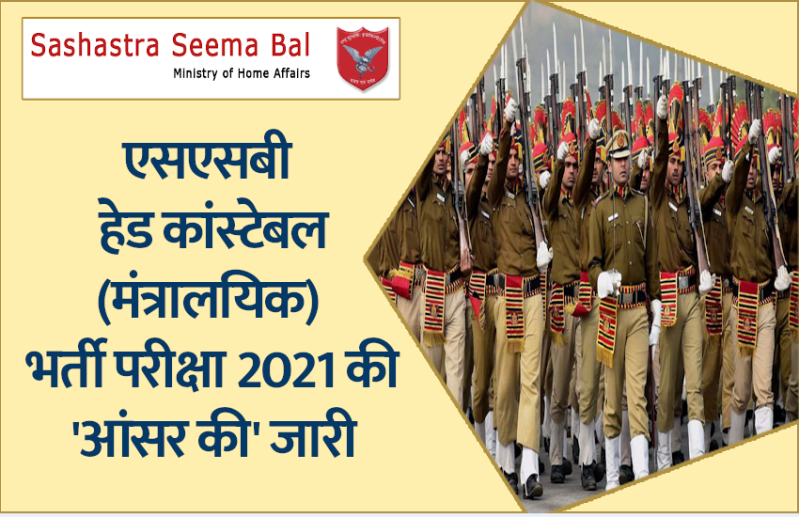 SSB Head Constable Exam 2021 Answer Key: सशस्त्र सीमा बल ने हेड कांस्टेबल (मंत्रालयिक) भर्ती परीक्षा की उत्तर कुंजी जारी कर दी है। यह आंसर की एसएसबी की ऑफिशियल वेबसाइट पर एक पीडीएफ फ़ॉर्मेट में उपलब्ध है। एसएसबी हेड कांस्टेबल भर्ती परीक्षा में शामिल होने वाले कैंडिडेट्स आंसर के मिलान के लिए ऑफिशियल उत्तर कुंजी की मदद ले सकते हैं। कैंडिडेट्स नीचे दिए गए लिंक के माध्यम से भी एसएसबी हेड कांस्टेबल परीक्षा 2020– पेपर -1 की उत्तर कुंजी को डाउनलोड कर सकते हैं और अपने आंसर का मिलान भी कर सकते हैं।