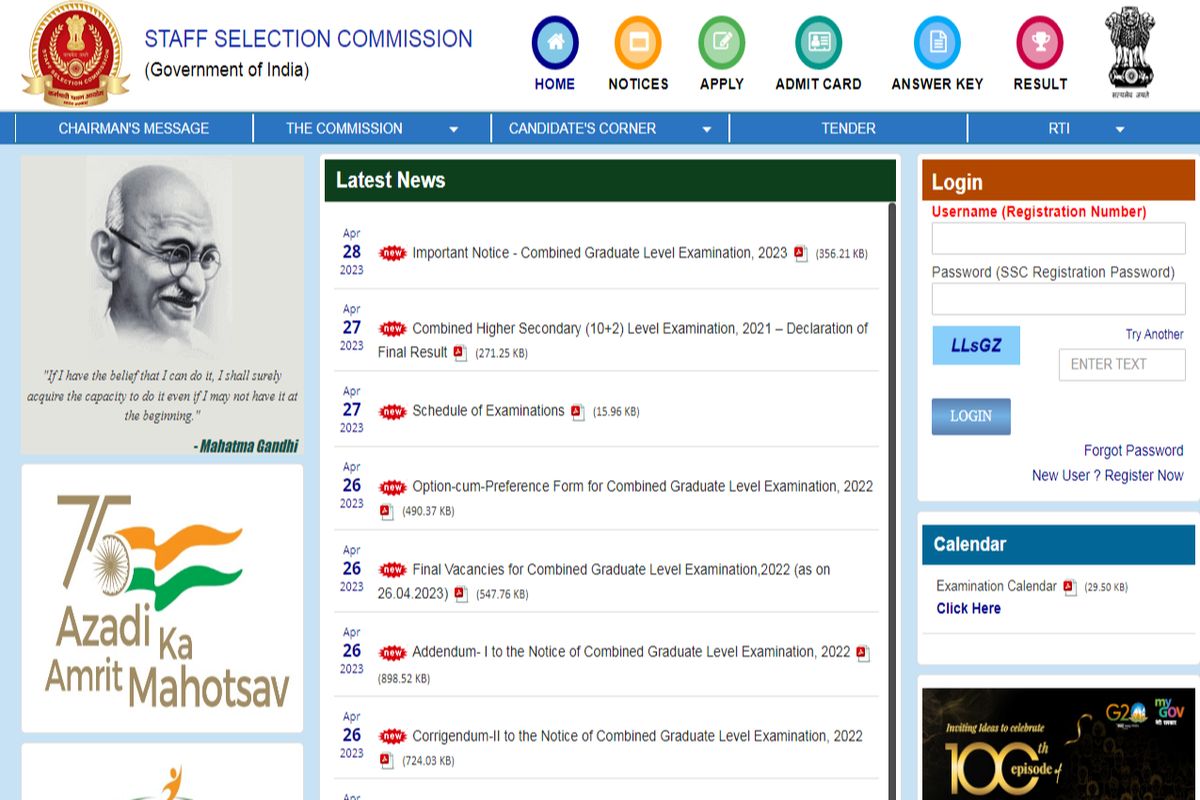 2. यहां होम पेज पर उपलब्ध एसएससी परीक्षा कैलेंडर 2023 लिंक पर क्लिक करें।