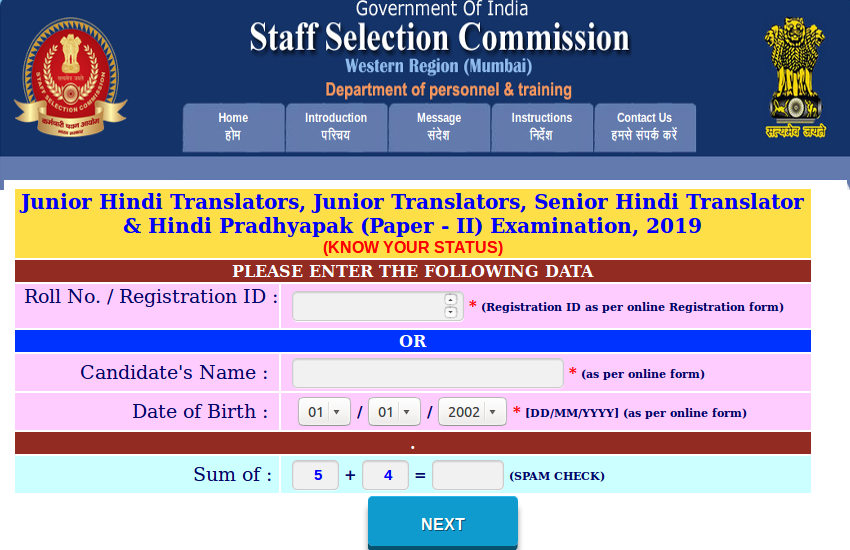 SSC WR JHT Paper -2 Admit Card 2020 डाउनलोड करने के लिए यहाँ क्लिक करें