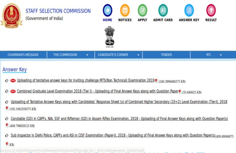 SSC MTS answer key Exam 2019 डाउनलोड करने के लिए यहां क्लिक करें