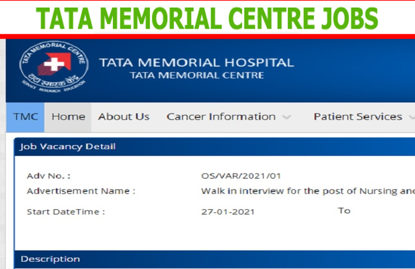 टाटा मेमोरियल सेंटर (टीएमसी) भर्ती नौकरी 2021 अधिसूचना:—