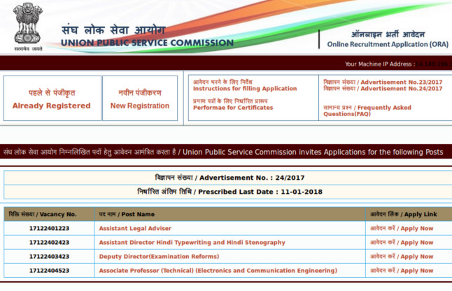 upsc recruitment 2017 : संघ लोक सेवा आयोग (UPSC) रिक्त पदों का विवरण और उसके लिए सम्बंधित योग्यता