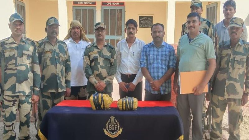 जब्त हेरोइन के साथ सीमा सुरक्षा बल के अधिकारी व जवान।