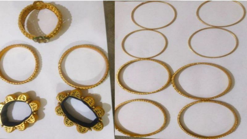 80 ग्राम सोने की चार चुड़ियां, 50 ग्राम सोने की चार चुड़ियां, 60 ग्राम सोने का एक सैट, 140 ग्राम सोने की दो मटर माला, 70 ग्राम सोने का एक कंगन, 30 ग्राम सोने की पाटला चुड़ी, 10 ग्राम सोने की एक चेन, 12 ग्राम सोने की दो चुड़ी, 200 ग्राम सोने के चार गजरे, 20 ग्राम सोने का एक ब्रेसलेट। घड़ी व आठ हजार रुपए भी मिले।
