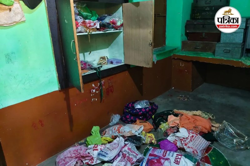 घर पर चोरी के बाद टूटे ताले और बिखरा सामान। पत्रिका