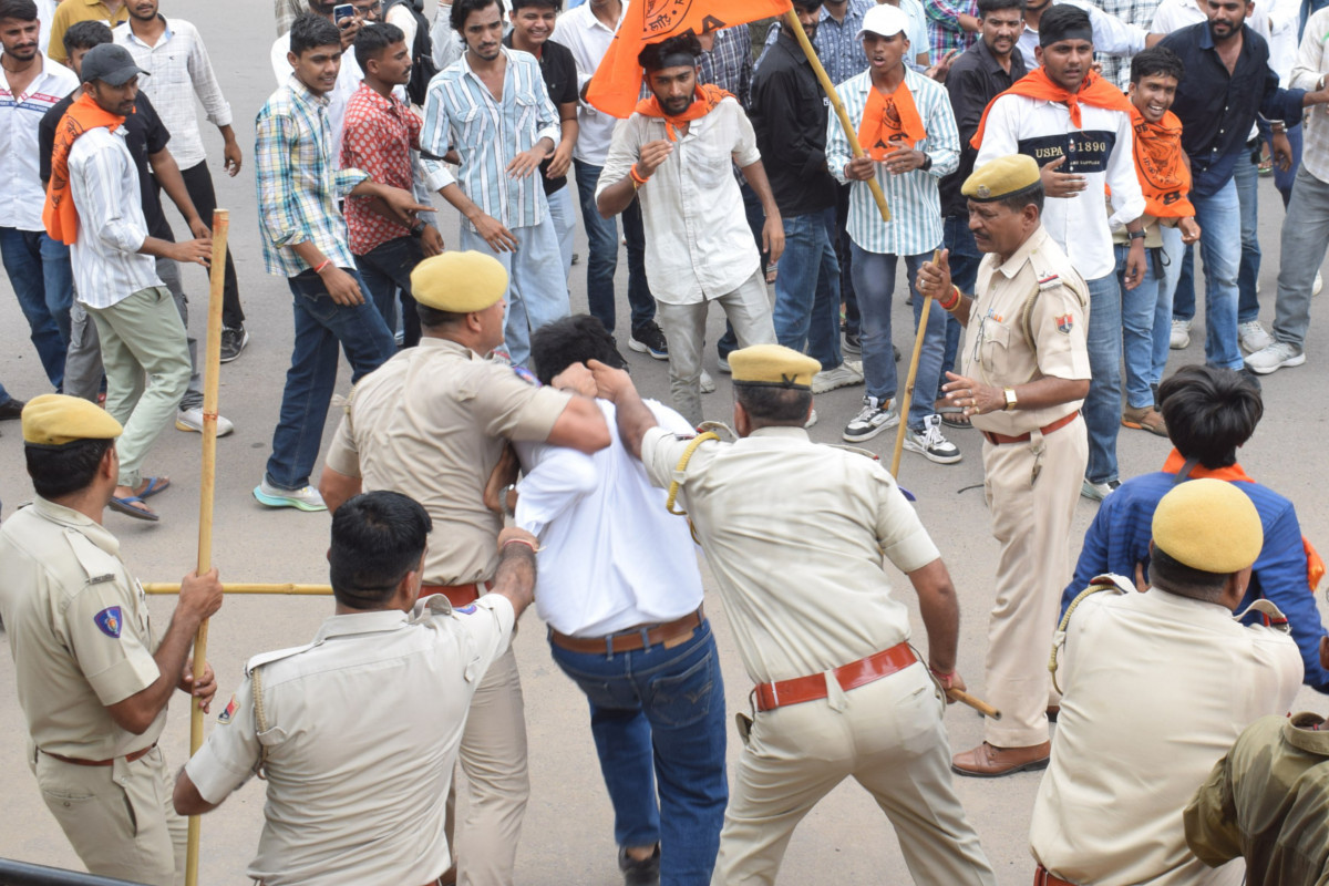 पहले एबीवीपी ने जोधपुर कलक्ट्रेट का घेराव किया। इस दौरान परिषद के सैकड़ों कार्यकर्ता हाथों में तख्तियां और बैनर लिए नारेबाजी करते हुए कलक्ट्रेट पहुंचे। प्रदर्शनकारी छात्र छात्राएं कलक्ट्रेट के बाहर लगे बेरिकेड्स पर चढ़ गए और अंदर जाने की कोशिश करने लगे। पुलिस ने हल्का बल प्रयोग कर खदेड़ा।