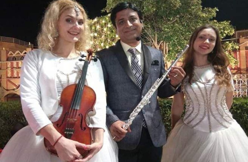 Musician Anilkumar Asopa recites film songs on flute and sexophone