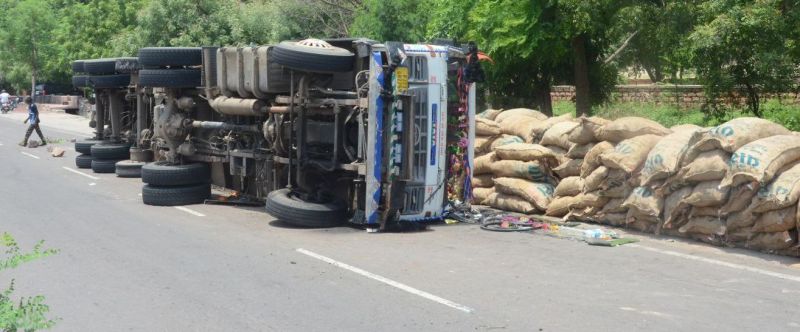 मण्डोर रोड पर राजस्थान पुलिस ट्रेनिंग सेंटर आरपीटीसी के बाहर गोलाई में तेज रफ्तार ट्रेलर अनियंत्रित होकर पलट गया। उसमें भरा पशु आहार सड़क किनारे बिखर गया। चालक व खलासी के चोटें आईं।
