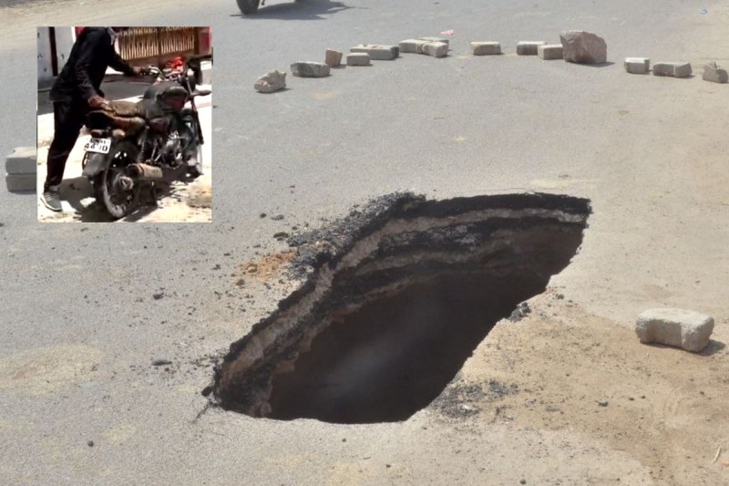 यहां से निकल रहा एक फूड डिलीवरी युवक गड्ढे में गिर गया। गनीमत रही कि उसे गंभीर चोट नहीं पहुंची। क्षेत्रवासियों ने बताया कि बाइक सवार फूड डिलीवरी बॉय था, जो दुकान से सामान लेकर जा रहा था। जब बाइक सवार दोपहर में यहां से गुजरा तो अचानक सड़क धंस गई और वो बाइक समेत सड़क पर हुए गड्ढे में गिर गया। सड़क धंस जाने से गिरे बाइक सवार को आसपास के लोगों ने बड़ी मशक्कत से निकाला गया।