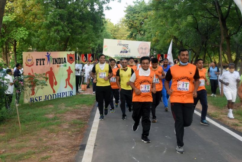 सीमा सुरक्षा बल राजस्थान फ्र ंटियर के महानिरीक्षक अमित लोढ़ा के निर्देशन में आयोजित फिट इंडिया फ्र ीडम रन में मुख्यालय के अधिकांश अधिकारियों, अधीनस्थ अधिकारी और कार्मिकों ने भाग लिया। लोढ़ा ने बताया कि इस तरह के आयोजन से तन-मन स्वस्थ रहने के साथ शरीर ऊर्जावान रहता है। साथ ही व्यावहारिक जीवन में एकता व अनुशासन भी बढ़ता है। इसके अलावा भाईचारे और सामंजस्य की भावना का विकास भी होता है। बीएसएफ की ओर से फिट इंडिया कार्यक्रम के अंतर्गत 15 अगस्त से 2 अक्टूबर तक विभिन्न कार्यक्रम आयोजित किए जा रहे हैं।